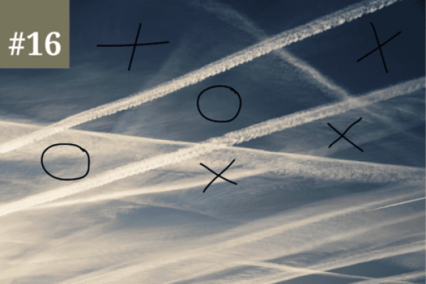 Einige sonnig-blaue Tage, aber regelmässig durchkreuzt und durchstrichen von präzisem Kondensgestreif, auf dem man imaginär kopfüber Schach hätte spielen können. So phantasievoll wie dieses Jahr wurde noch nie gesprüht, so kam es mir vor, ich sah Raster, Cluster und alle möglichen Muster, Zickzacklinien, Ikosaeder und an einem milchigen Augusttag sogar ein Art Pentagramm, gesäumt von Waffeleisenwolken parellel in Reih und Glied, und das ohne die Zuhilfenahme stärkerer psychoaktiver Substanzen.